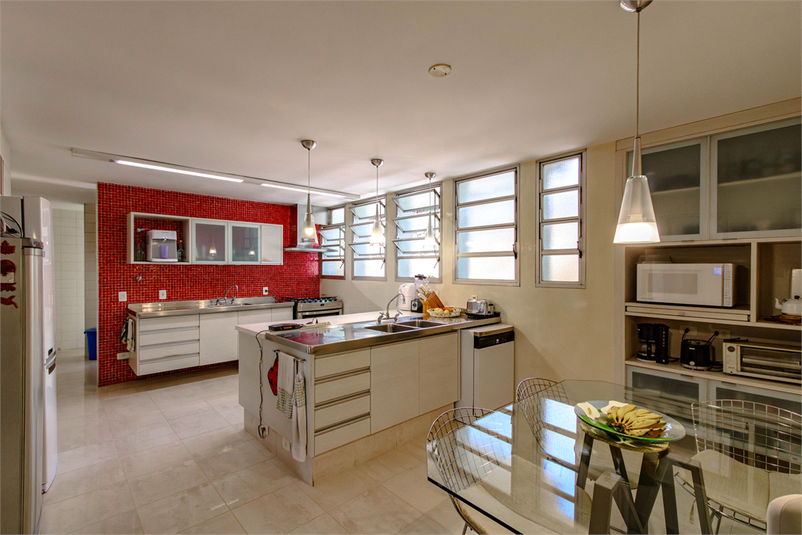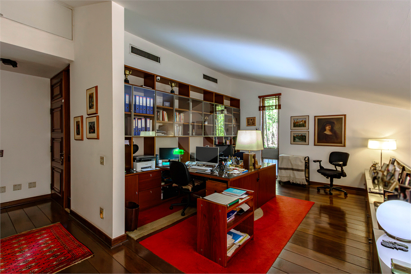 No piso superior encontra-se a área intima, com a suíte master com closet e mais 2 dormitórios, todos com varanda e muita luz natural, banheiro, escritório e lavabo. Conta com ar condicionado central nos dois pisos. Copa integrada a excelente cozinha, despensa e 2 quartos de funcionários.