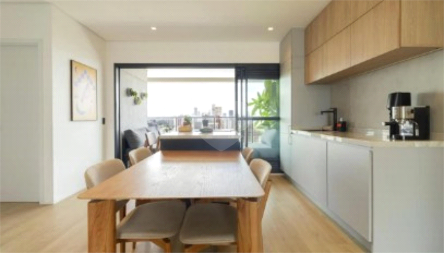 A área social foi intencionalmente ampliada, integrando sala e cozinha em um ambiente generoso, fluido e extremamente iluminado. A cozinha, de estilo europeu, é totalmente planejada, com geladeira, freezer e lava-louças embutidos, unindo estética clean e máxima funcionalidade.