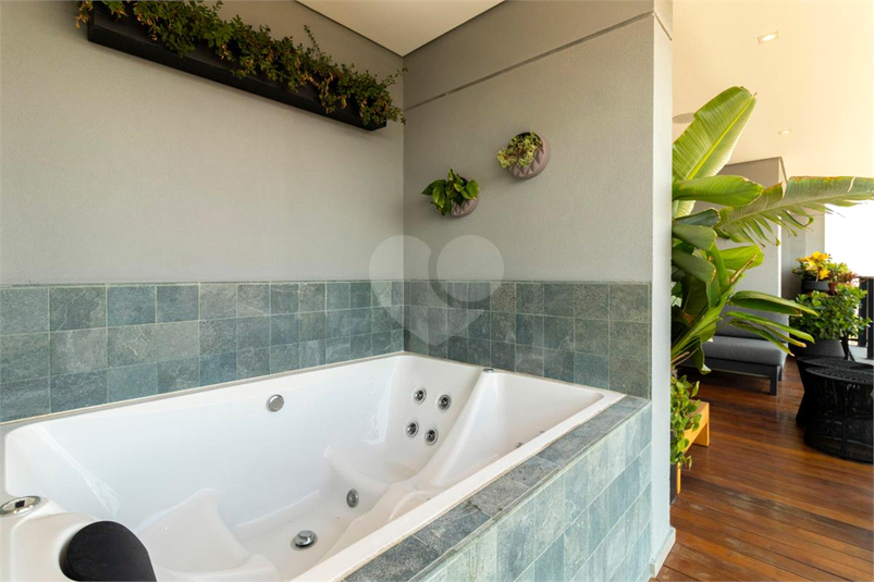 A varanda é um capítulo à parte: transformada em um espaço verde exclusivo, com jacuzzi moderna, sistema de som, iluminação inteligente e paisagismo pensado para relaxamento total. Existe viabilidade técnica para integração com a sala, mas optou-se por manter o terraço verde, preservando a sensação de refúgio, privacidade e contato com a natureza.