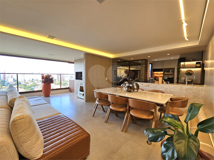 .DESTAQUES DO PROJETO: Sala ampla com porcelanato 1,20 x 1,20 e varanda gourmet integrada, promovendo uma área social espaçosa e iluminada Parede verde com irrigação automatizada, que combina design, natureza e praticidade para um ambiente mais vivo e acolhedor. Sofá motorizado e sistema de som com caixas já instaladas.Cozinha aberta para a sala, moderna e funcional.Lavabo com pia em granito flameado, um toque de design exclusivo.Escritório com portas antirruído, piso e teto com isolamento acústico — ideal para quem trabalha em casa ou precisa de silêncio e concentração Área íntima com 3 suítes, todas com vista da cidade e piso em madeira Cumaru.Banheiro da Suíte máster com acabamento em mármore Marrom Imperador. Marcenaria sob medida e bancadas em mármore Paraná Lavanderia espaçosa, ideal para famílias com crianças. 2 vagas de garagem + depósito privativo. Condomínio com lazer incomparável e assessoria esportiva inclusa no condomínio: Quadra poliesportiva, playground e brinquedoteca Piscinas adulto e infantil com amplo deck Piscina coberta e aquecida com raia, sauna e sala de massagem Salão de festas, espaço gourmet e churrasqueira Pet place, mercado de conveniência e Academia completa com equipamentos modernos